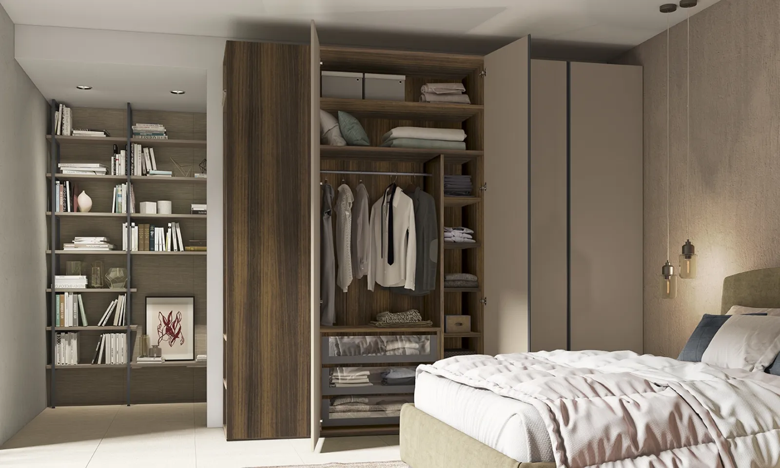 Gli Armadi e le cabine armadio con ante battenti devono ammobiliare la zona notte garantendoti una perfetta organizzazione degli spazi e un'esclusiva ricerca estetica. La zona del riposo è dedicata al riposo, deve perciò risultare arredata al meglio e completa di mobili e complementi capaci di creare un'ambientazione sempre distensiva. Per completare ottimamente il concept d'arredo, prediligi le nostre proposte di Arredamento Casa dei migliori brand, letti, armadi e comò vari per eleganza, dimensione e materiale. Contattaci per informazioni e preventivi e potrai completare la zona del riposo che hai sempre sognato grazie ad una ricca varietà di contenitori moderni come quest'armadiatura in melaminico nell'immagine.