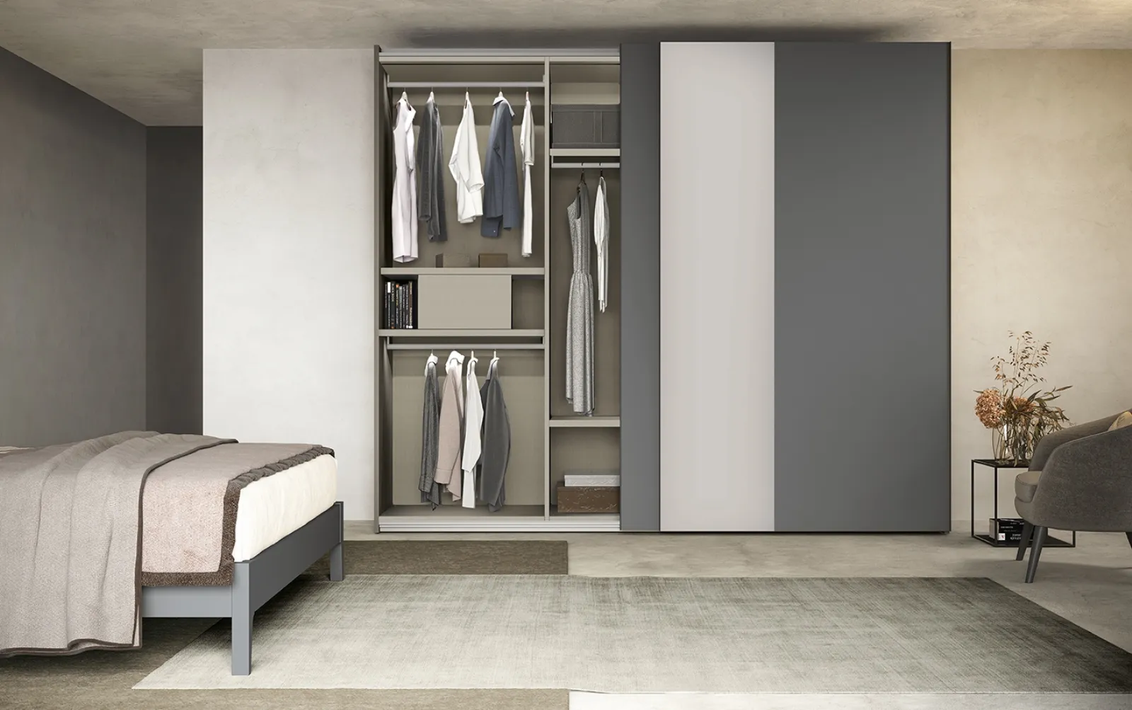 La riconosciuta azienda Colombini Casa dispone di una ampia produzione di Armadi a muro con ante scorrevoli, definiti da progetto particolare e praticità necessaria. Da noi ti attendono le più accattivanti proposte di Arredamento Casa, comò e comodini in commercio, diversificati per eleganza, dimensione e cromie per ultimare alla perfezione una camera da letto pratica e sofisticata. Armadio Freedom N17 di Colombini Casa: compila il form per info e preventivi e arreda la zona notte come l'hai sempre immaginata. Quest'armadiatura è ideale per essere collocato in un ambiente arredato con mobili e oggetti accessori moderni, mixando alla perfezione funzionalità e stile.