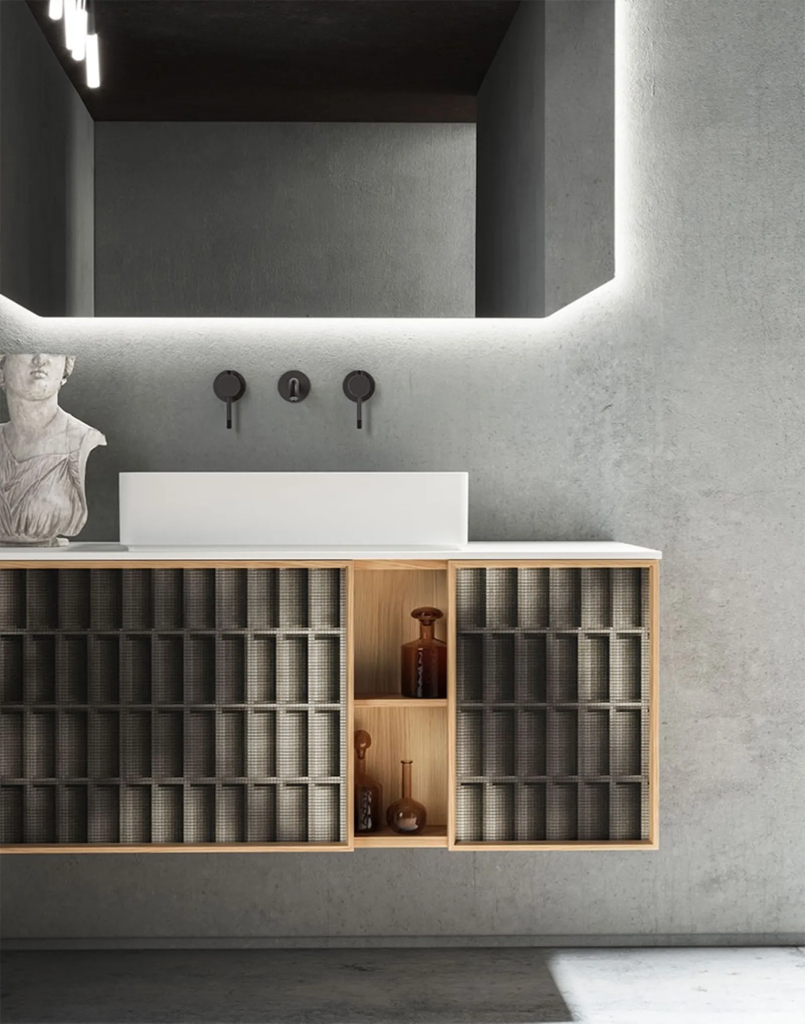 mobili bagno sospesi in legno del marchio Cerasa: clicca e scopri l'arredo bagno design Des Evolution Natural 01 per il bagno di casa.