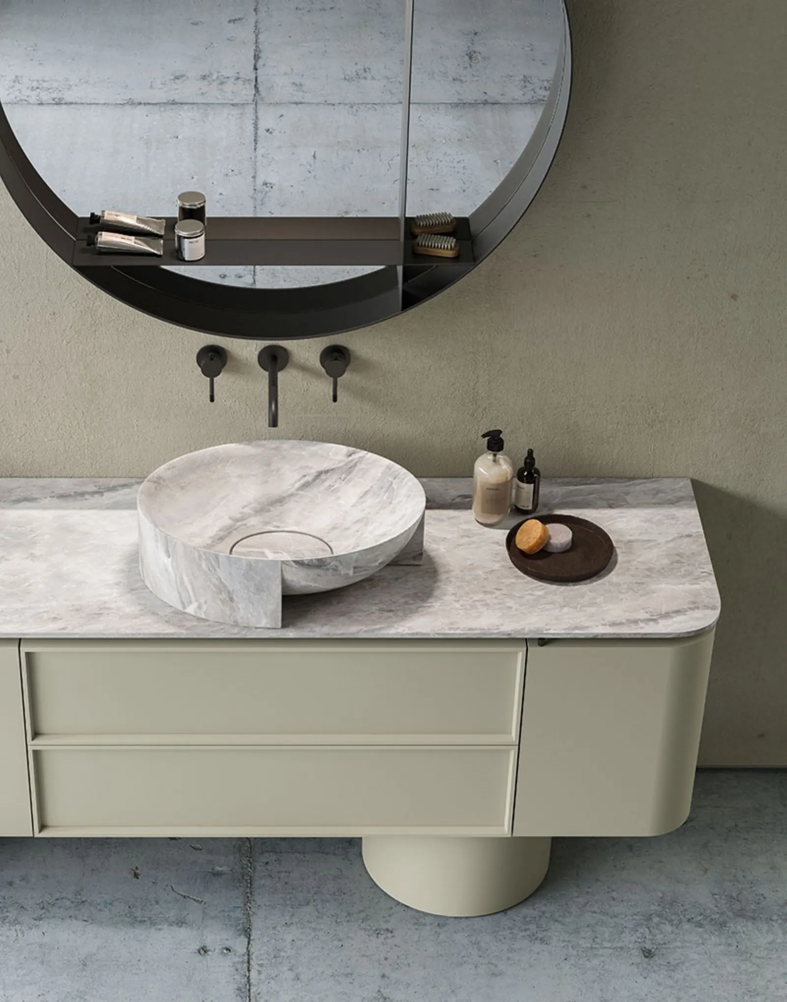 Arreda il tuo bagno design ottimamente con Des Evolution Natural 02, mobili bagno da appoggio e complementi in laccato opaco di Cerasa.