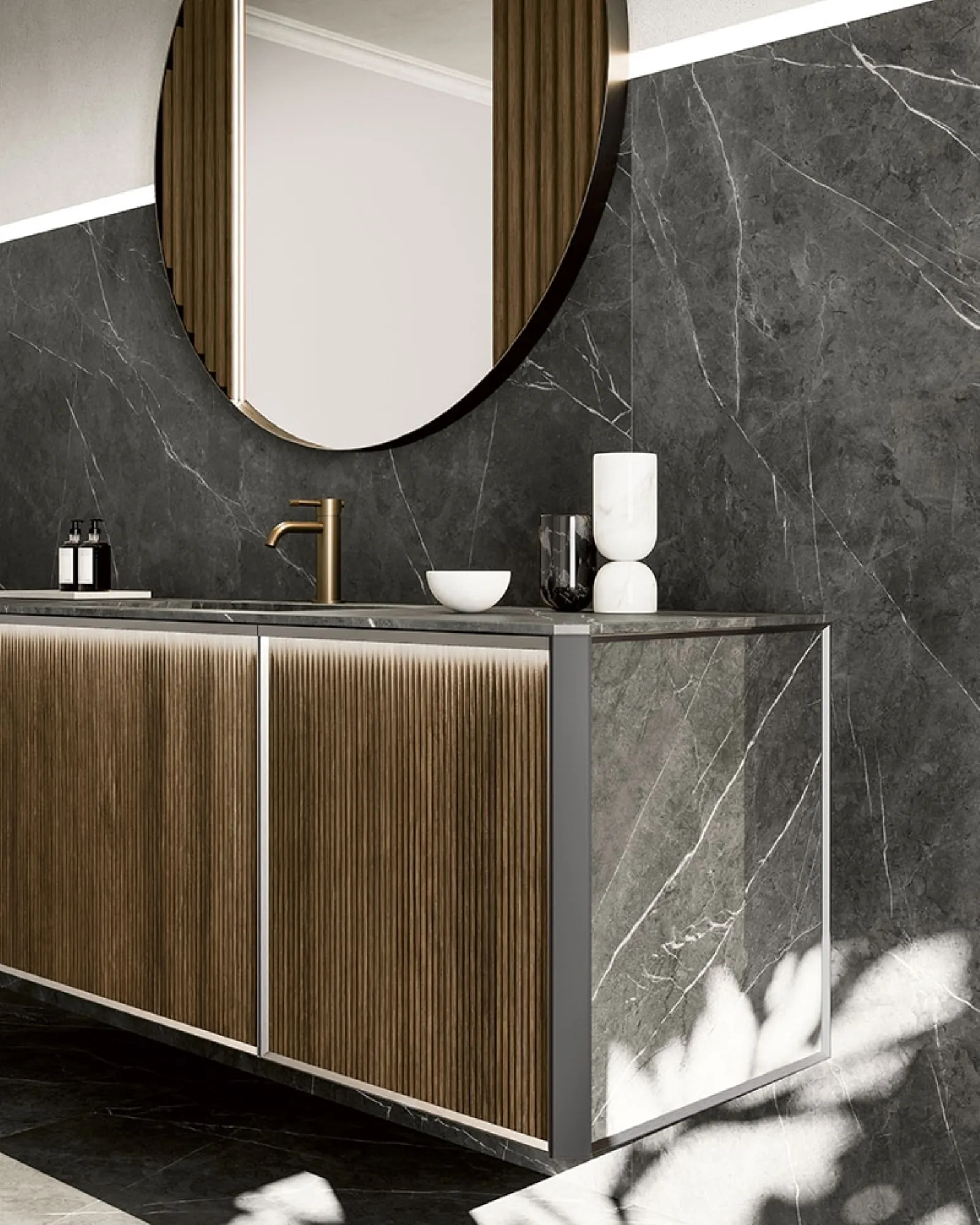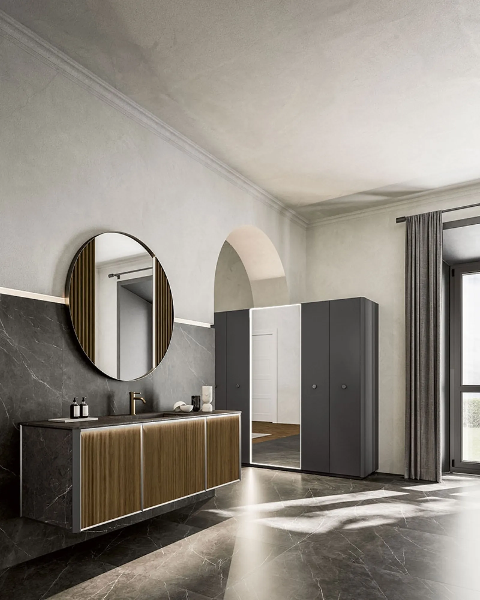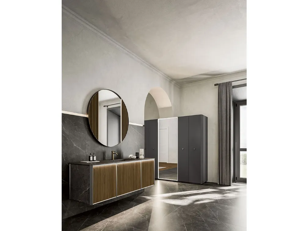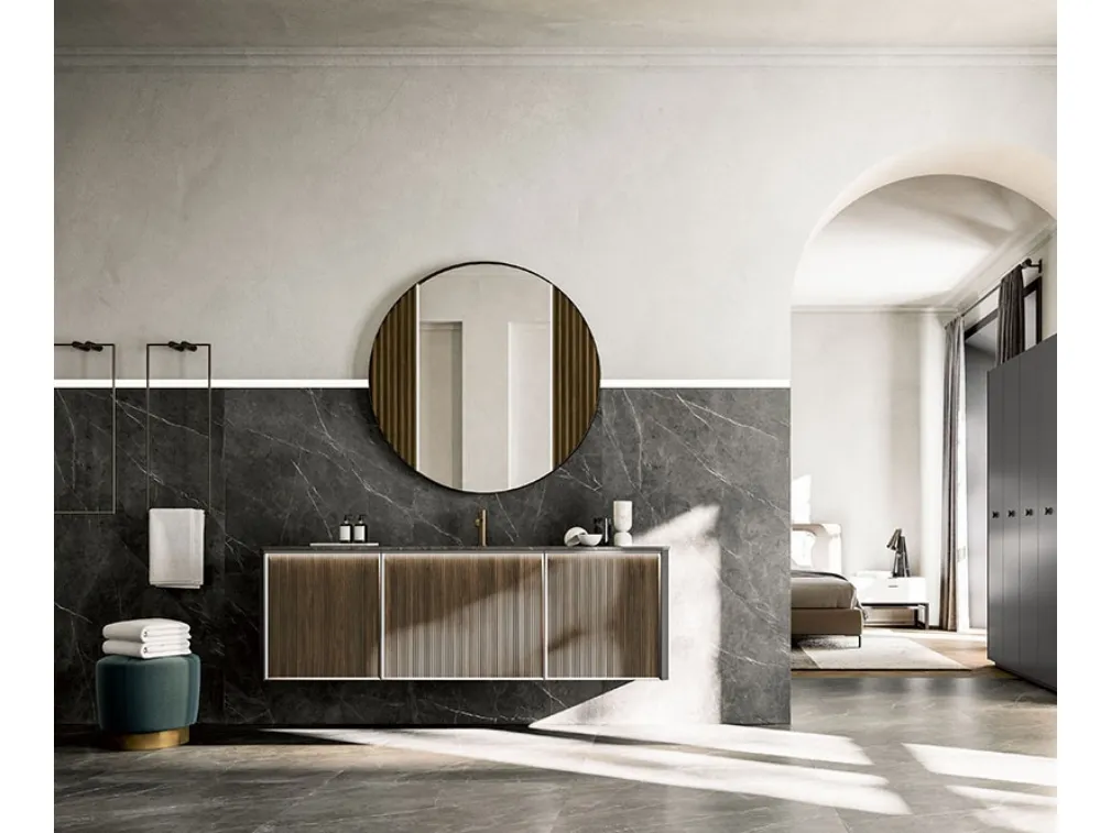 mobili bagno sospesi in legno del brand Cerasa: clicca e scopri l'arredo bagno design Honey 03 per la stanza del benessere.