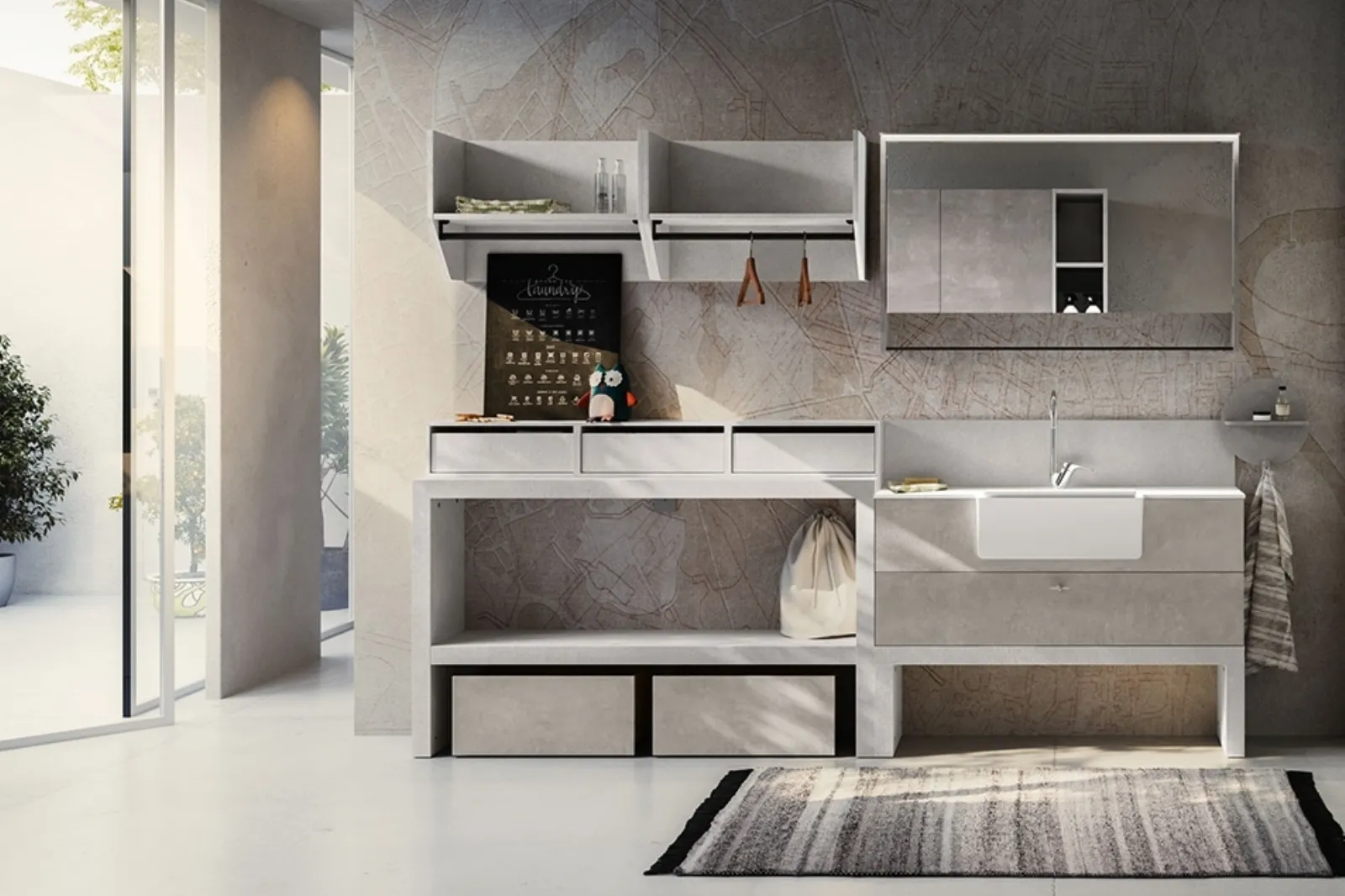Scopri di più sull'arredo bagno moderno: mobili bagno per lavanderia in melaminico come il modello Regola 01 di Cerasa ti attendono.