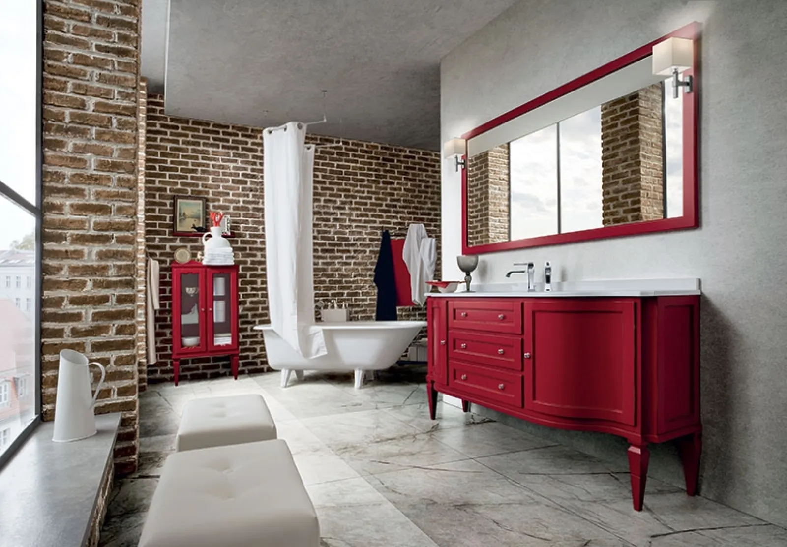 Mobile da Bagno York 03 in laccato Rosso usurato di Cerasa: clicca e ottieni informazioni su mobili bagno da appoggio in laccato opaco e elementi accessori della marca.