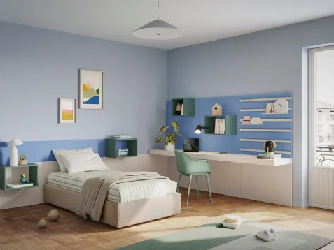 Questa proposta in melaminico ultima perfettamente le doti di funzionalità e il valore estetico della camaretta, in quanto è capace di congiungere ergonomia e sicurezza. Nell'arredo della stanza dei giovani affidati a noi: in negozio presentiamo tutte le più belle composizioni arredative moderne per la loro camera. Colombini Casa propone un ricco catalogo di accessori da accostare su misura: troverai letto, armadio o cabina armadio, scrivania, sedie e librerie. Se cerchi spunti creativi per arredare perfettamente la stanza dei tuoi bambini, ti presentiamo la Cameretta Golf K33 di Colombini Casa con finitura in melaminico. Porta contenuto estetico e cromie vivaci nella stanza dedicata ai più piccoli con questa soluzione, una delle Camerette con letti a castello per bambine di Colombini Casa.
