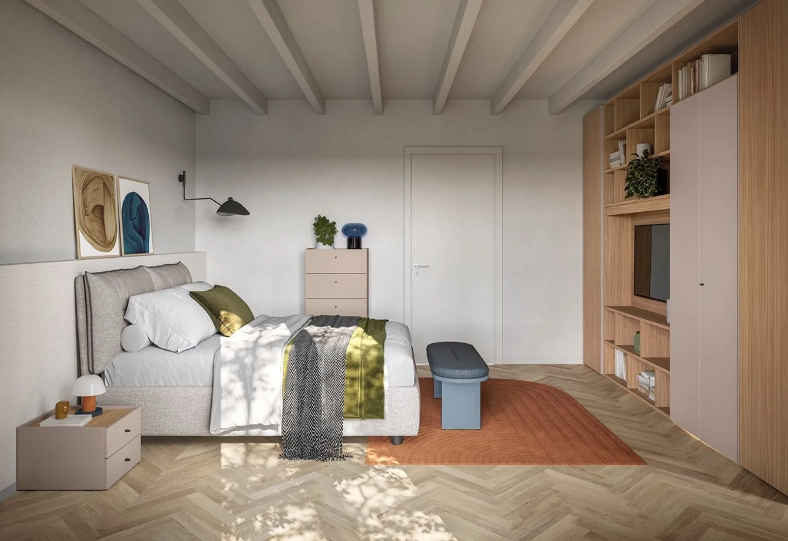 Materiali durevoli e lavorazioni eccellenti per il Gruppo Notte Brick di Colombini Casa in in melaminico, disponibile in showroom con le altre varie idee dell'azienda, per fare della camera da letto un ambiente che ricalchi la tua personalità. Ti chiedi come abbinare letti, armadi e comò? Con il modello di Colombini Casa mostrato in foto avrai un pezzo di arredamento perfetto per un luogo dai richiami moderni.
