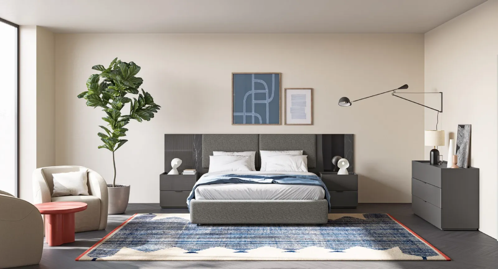 I Comodini, comò e gruppi notte possono essere abbinati al letto e al guardaroba o possono essere in voluto contrasto con essi: la scelta si baserà sulle reali possibilità di spazio e sulla ricerca di un ben dosato effeto finale. Da noi ti sta aspettando una ricca gamma di mobili ed elementi accessori moderni del rinomato marchio, specialista nella produzione di Arredamento Casa per la zona notte. Il Gruppo Notte Eclettica EN01 di Colombini Casa è una delle più originali soluzioni capaci di regalare un accento di stile aggiuntivo alla camera da letto, con l'utilizzo di materiali di pregio.