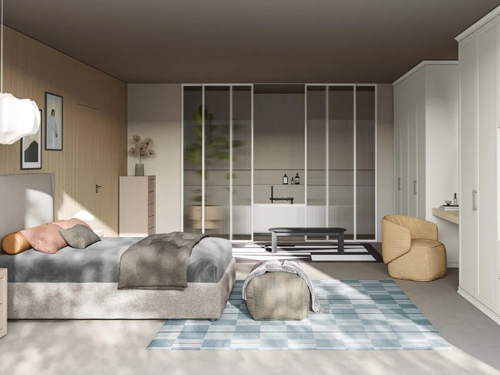 Vuoi progettare la camera da letto? Eccoti il letto in tessuto Arcadia Norma di Colombini Casa per spazi classici.