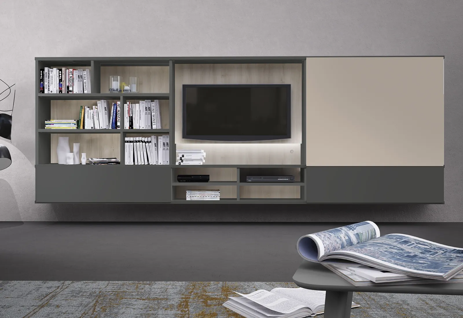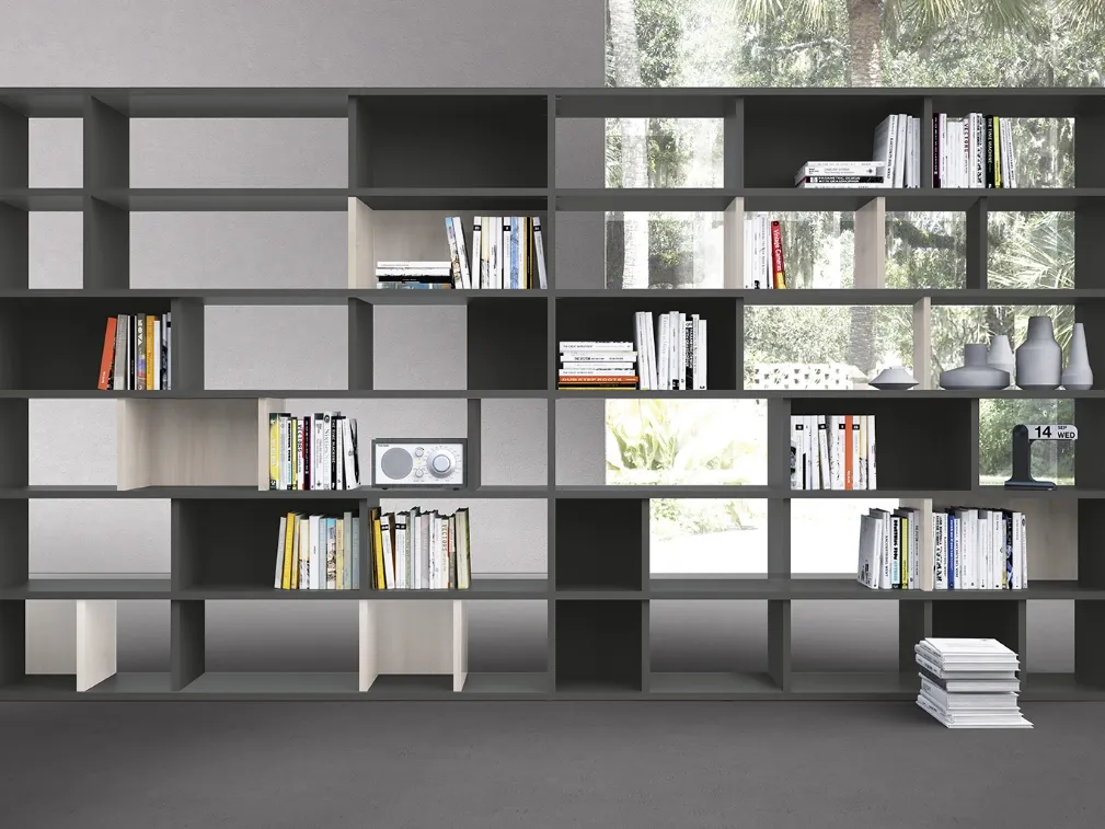 Texture di pregio e forme decise: scopri la libreria Infinity L24 di Colombini Casa tra le più belle Librerie moderne componibili.