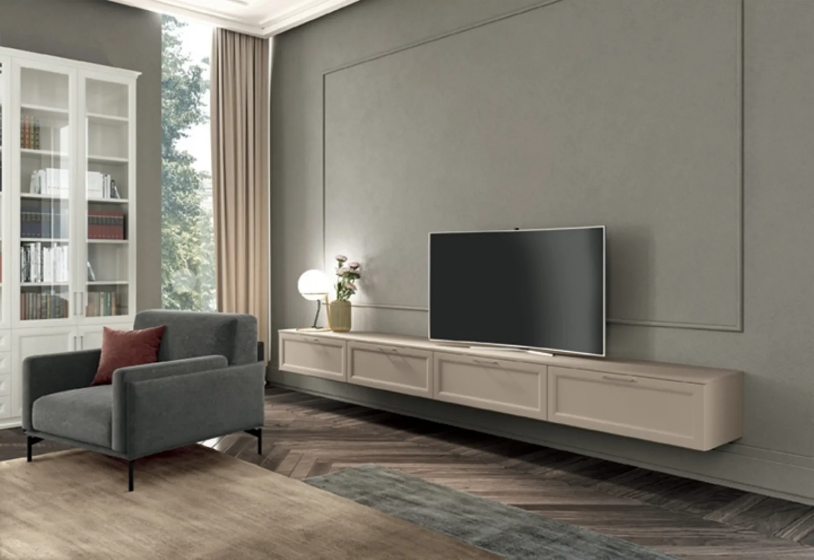 Clicca e scopri di più sulla parete attrezzata Arcadia AS006 della firma Colombini Casa: è la soluzione dalle linee classiche perfetta per te.