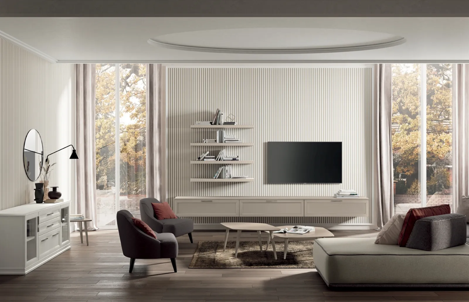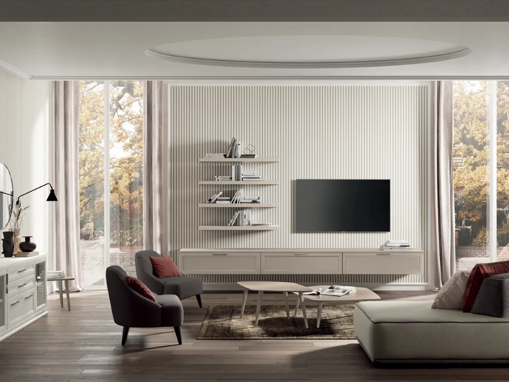 Anche in un soggiorno non troppo grande, questo tipo di arredo riesce a ottimizzare gli spazi sfruttando bene ogni angolo e garantendo componibilità personalizzabile tipica delle soluzioni classiche. Se cerchi arredi salvaspazio e realizzabili su misura per te, contattaci e scopri di più sull'Arredamento Casa dei migliori brand. La Parete Attrezzata Arcadia AS009 di Colombini Casa in foto, con finitura in melaminico, risolve le più particolari esigenze abitative di spazio e stile senza rinunciare alla ricerca stilistica. Questa soluzione rappresenta tutta la qualità che il marchio assicura grazie a pluriennale professionalità e grande passione nel campo dell'arredo e del design.