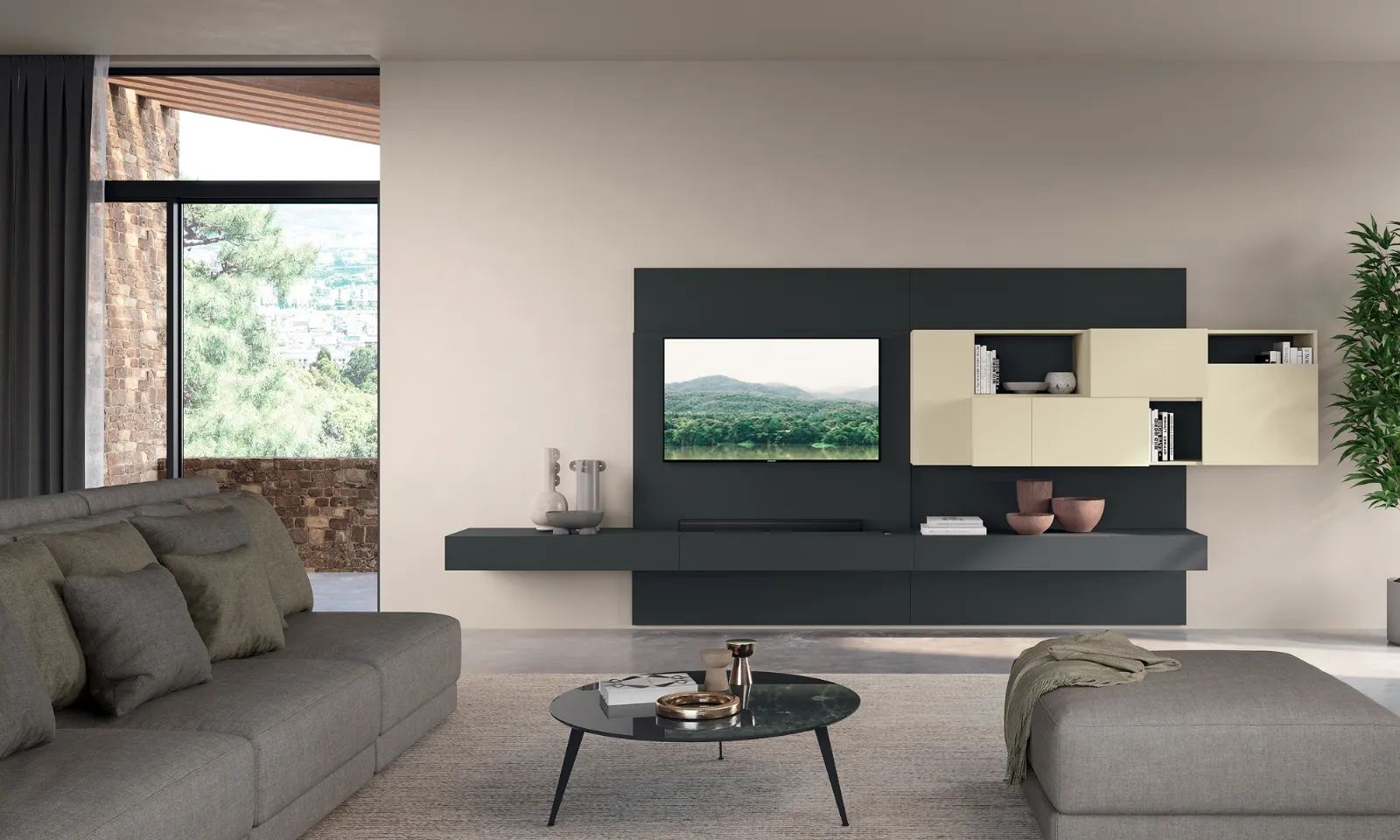Pareti attrezzate e mobili giorno Febal Casa: clicca e scopri il modello Diciotto 03 e potrai completare stanze moderne di ogni tipo.