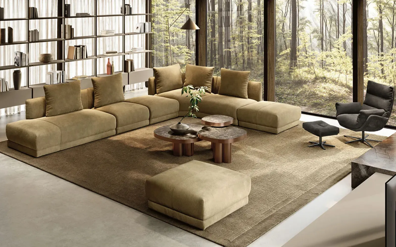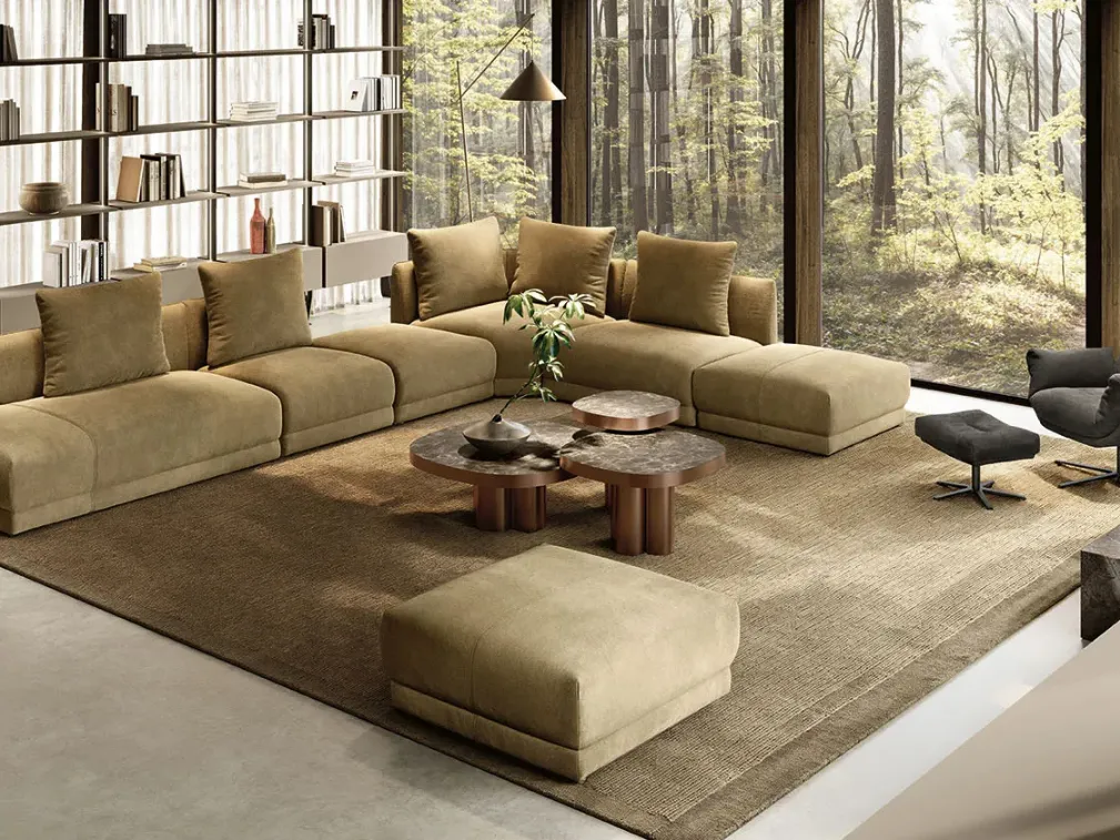 Salotti e divani ad angolo Febal Casa: ti offriamo il modello Bamoral in tessuto per impreziosire il soggiorno.