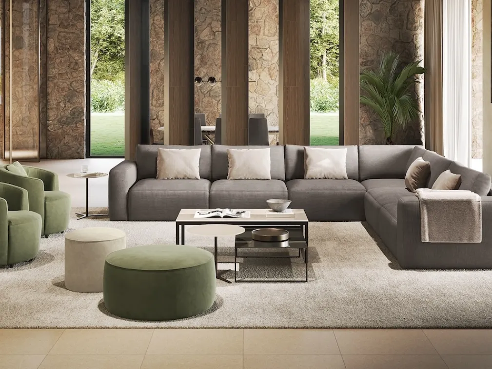 Cerchi salotti e divani Febal Casa in tessuto? Clicca e ottieni informazioni sul modello Parioli angolare per spazi moderni.