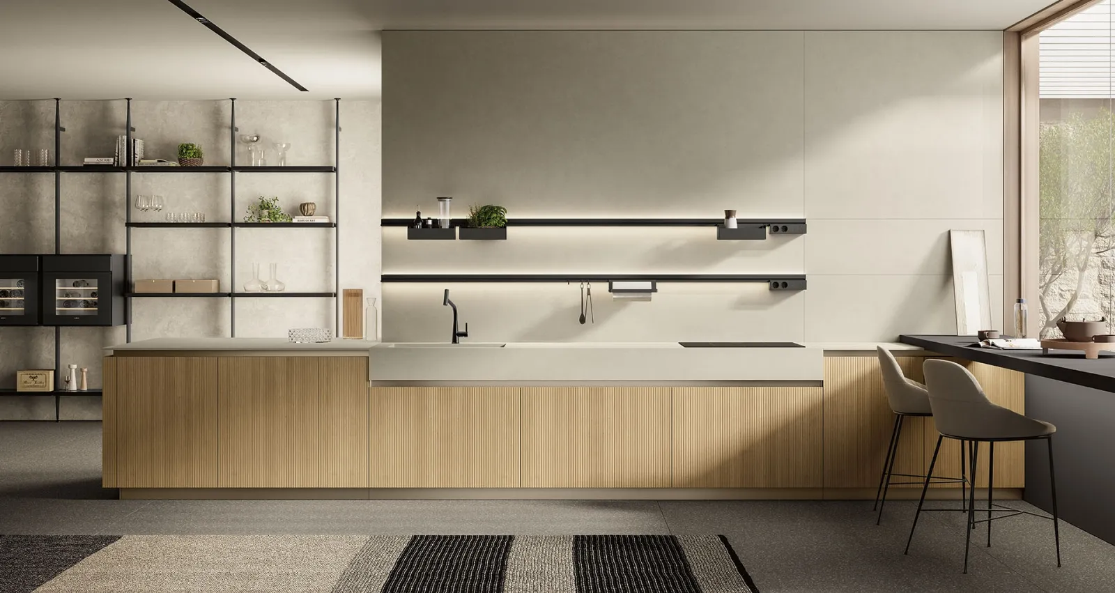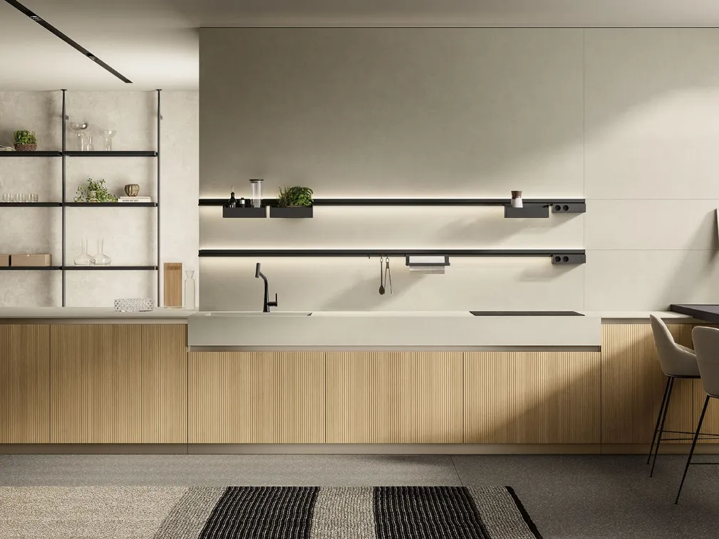 Scopri di più sulla cucina Origina Vol III - Composizione 05 di Febal Casa: questa soluzione in legno sarà la scelta ideale per te!