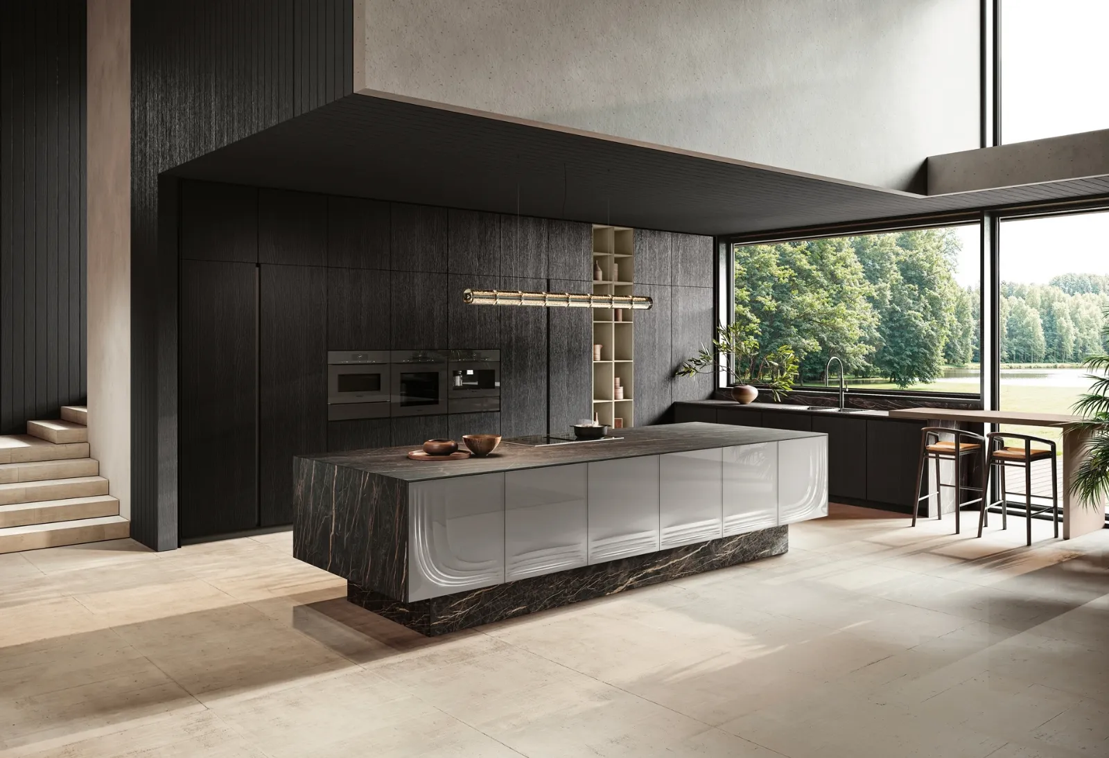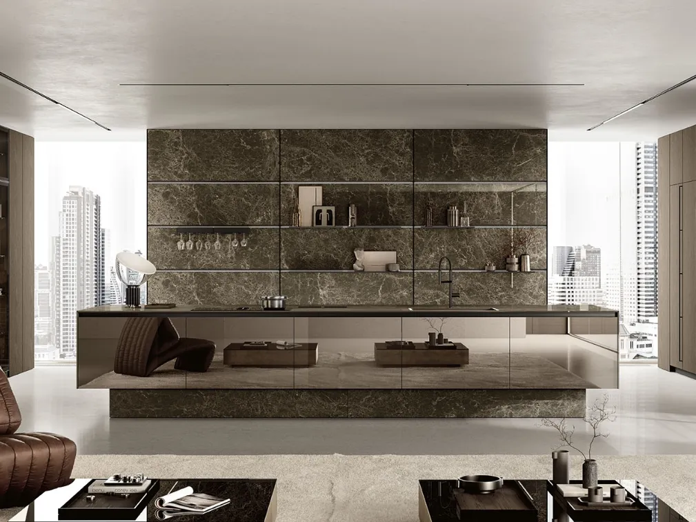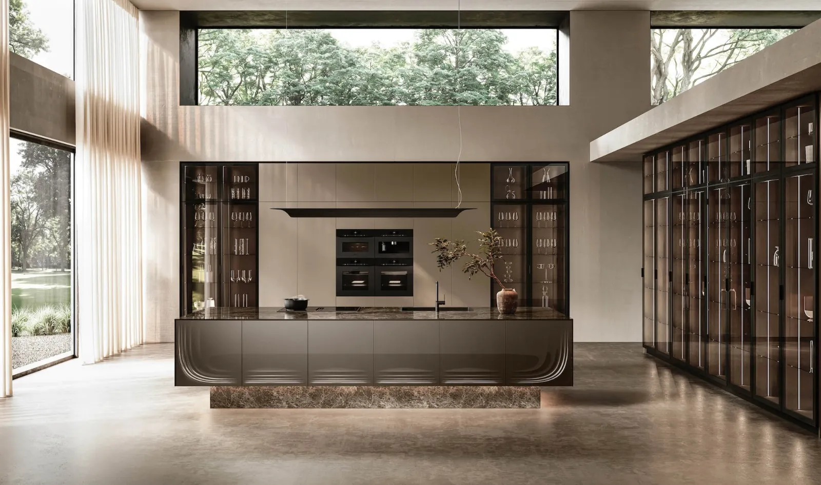 Se desideri una cucina moderna Febal Casa, Origina Vol III - Composizione 06 in vetro ti aspetta nel nostro negozio di Cucine Moderne con isola.