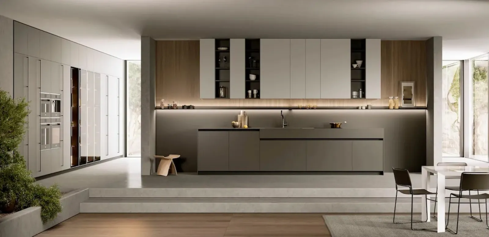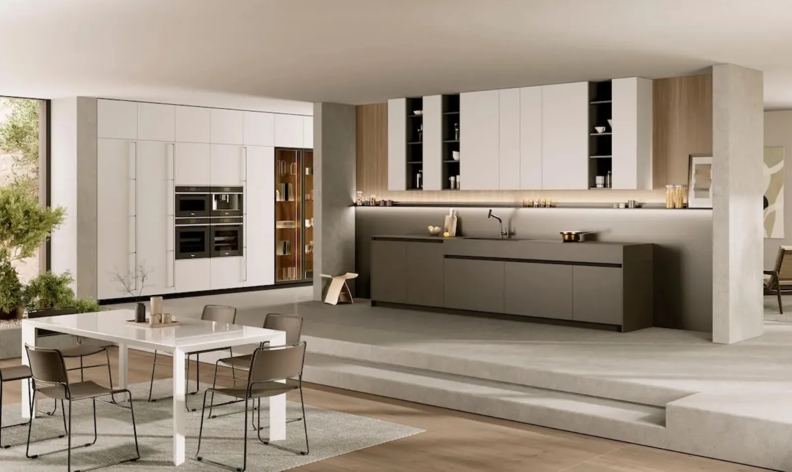 Scopri massima componibilità delle Cucine ad angolo Febal Casa: la cucina Modula Composizione 03 in laccato opaco ti sta aspettando!