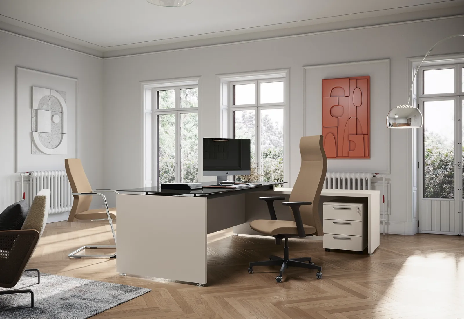 Se vuoi ultimare il tuo ufficio, ti presentiamo il modello Go Easy Vetro di Colombini Office tra differenti soluzioni di scrivanie direzionali.