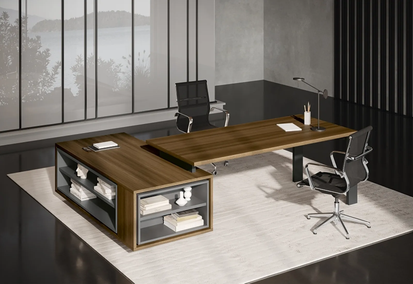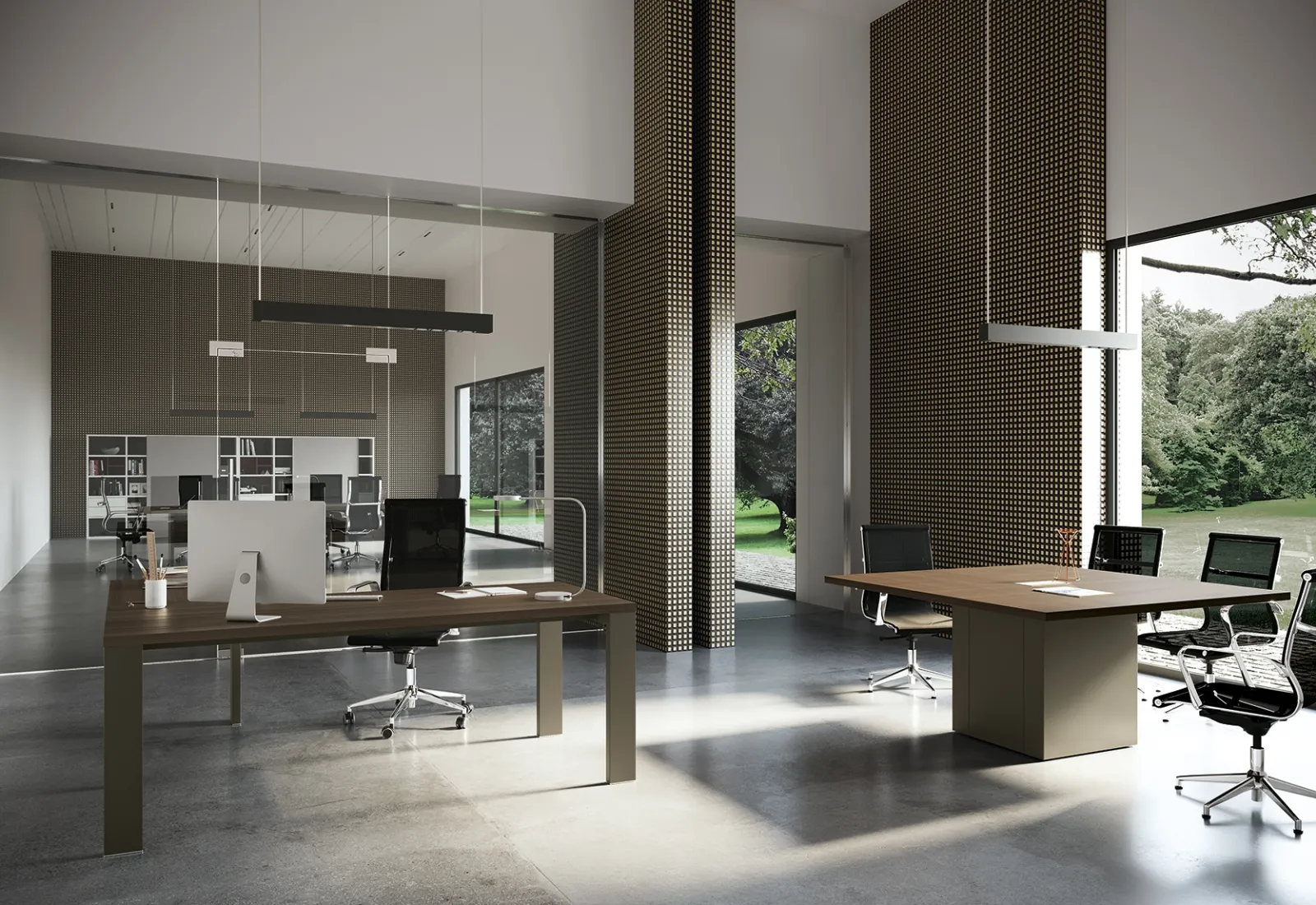 Una ricca gamma di scrivanie direzionali in melaminico ti sta aspettando! Il modello Go Steel Melaminico di Colombini Office ti sta aspettando!