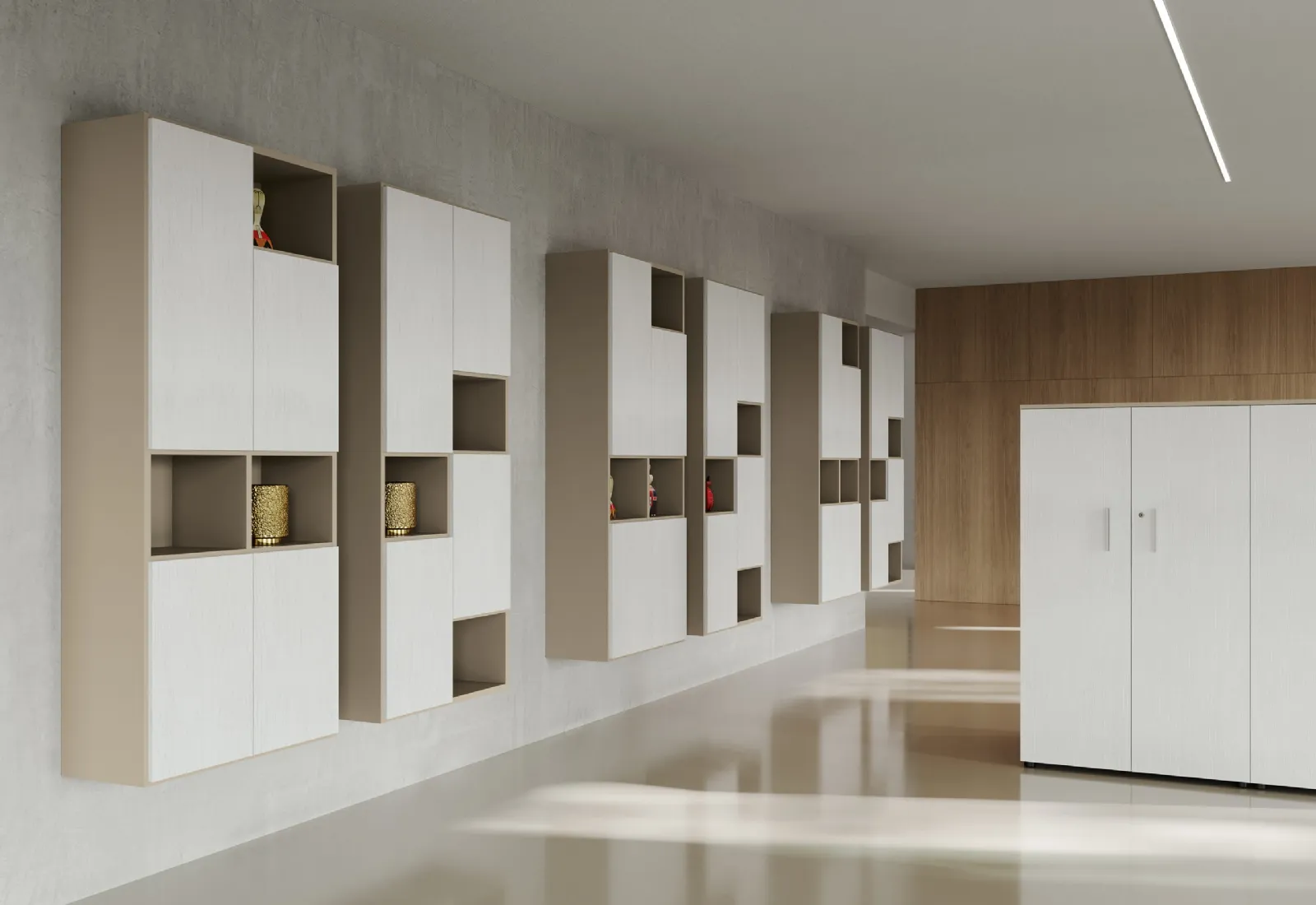 Vuoi progettare uffici operativi e direzionali? Eccoti differenti proposte di librerie per ufficio in melaminico, come il modello Libreria Infinity Sospesa di Colombini Office.
